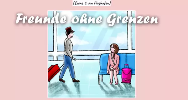In der Fotostory lernen sich Lilla aus Ungarn und Matija aus Serbien auf einem Flughafen kennen und sprechen über Grenzen und wie man sie überwinden kann.